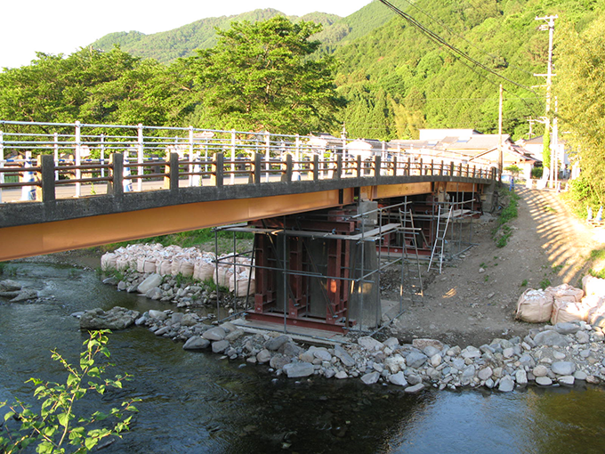 例えば、昭和6年に架けられた全長約35mの橋梁の補修においては、まず橋梁全体について鉄筋およびコンクリート、鋼材、伸縮装置、舗装等の調査・測定を行い、劣化の原因や健全度について評価しました。